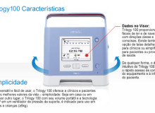 Trilogy100, um versátil ventilador de suporte vital desenvolvido pela Respironics. Inovação da tecnologia bi-level, combina níveis exclusivos de flexibilidade com facilidade de uso e tecnologia avançada para revolucionar a gestão de enfermidades respiratórias.